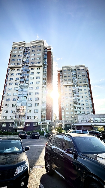 Пряталось солнце за домами, но в кадр все равно попало ))