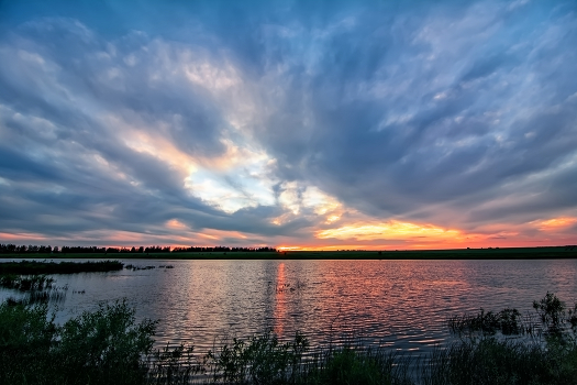 закат на пруду