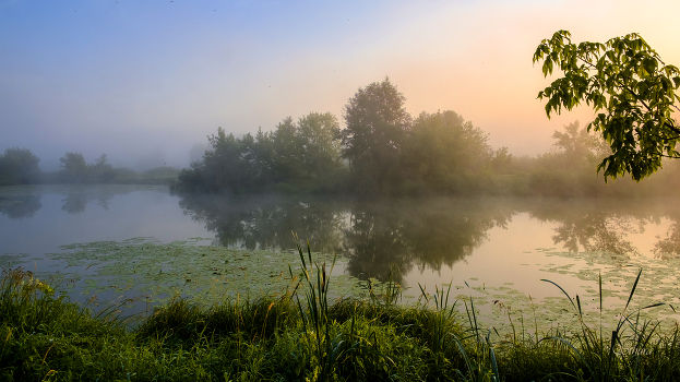 На заре.