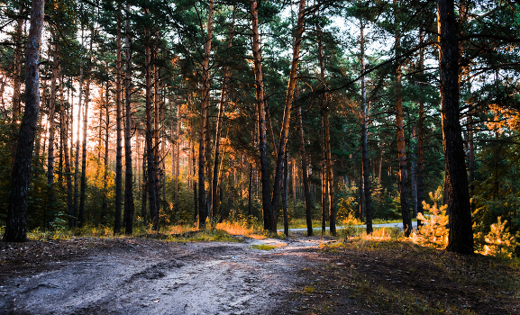 Утро в сосновом лесу.