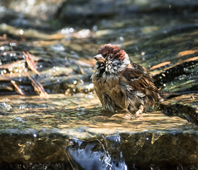 полевой воробушек в жару.. наслаждение от процедуры у всех! у него и у фотографа конечно же. )