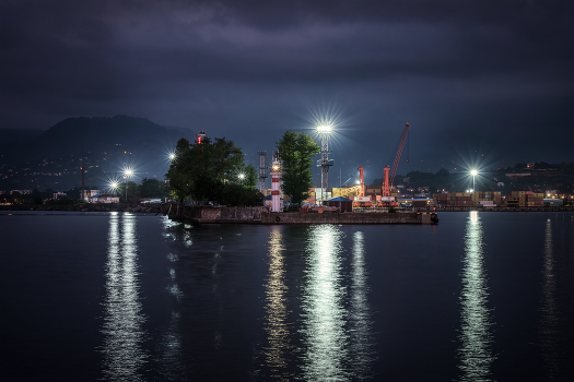 Lighthouse in the Batumi port in sundown