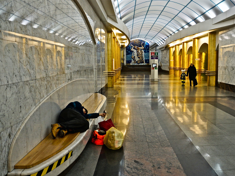 В сон легко может повергнуть ужасная мука на лике Атланта, держащего небесный свод :). Впечатлительные и бесконечно уставшие от городской суеты люди видят его на эпическом панно в торце зала станции метро «Международная» (Санкт-Петербургский метрополитен).