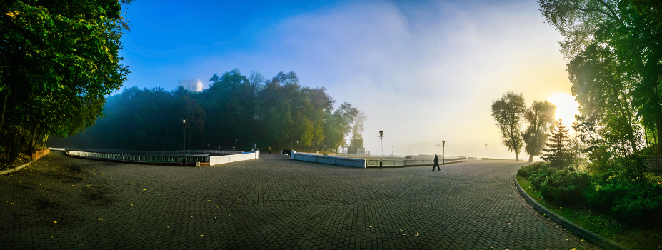 Восходящее солнце, поглощает туман. Гомельский парк.