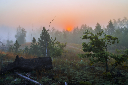 В лесу на рассвете.