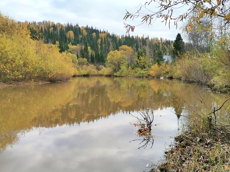 За 10 лет таежная река заросла кустарником, поэтому снимаю сидя на травяной кочке в воде, рискуя отправиться в дальнее плавание... на м/т