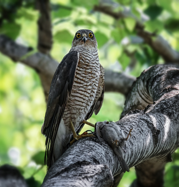 Ястреб перепелятник с добычей. Похоже, это самка.