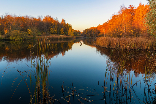 восход на лесном пруду