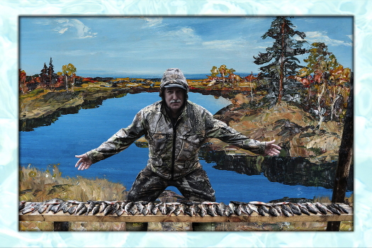 Лёша отличный рыбак, у которого немало престижных трофеев, но на этом фото сам подсмеивается над выложенной мелочью. А я, чтоб не разбавлять её и не разбивать картину, оставил таз с крупняком за кадром под скамейкой. А ему, для смеха, отправил эту же картинку с цеником в руке.