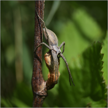 Пизаура удивительная - Pisaura mirabilis. Довольно распространенный паук. Ловчих сетей не плетет.