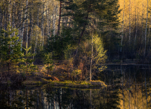 Апрель. Первая зелень одевает березки.