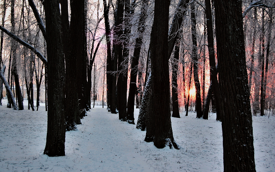 Вечерняя аллея с заходящим солнцем
