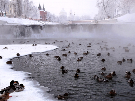 Туман в морозное утро над рекой