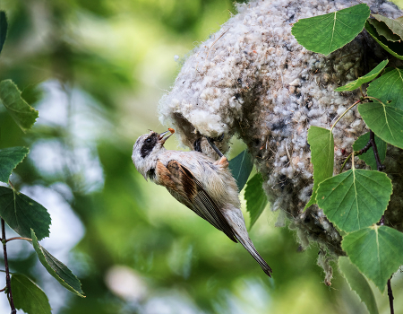 Ремез у гнезда с потомством.
