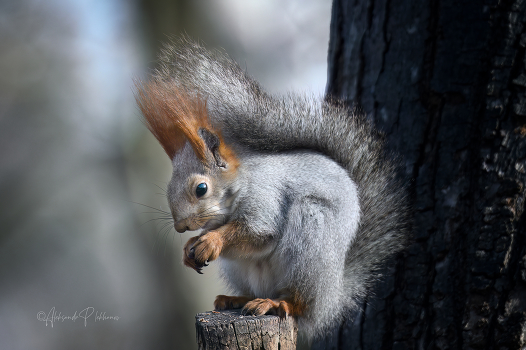 Белочка в зимней шубке с орешком