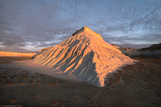 С определенного ракурса склон меловой горы выглядит как настоящая пирамида. Тузбаир, Мангистау