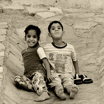 В Омане я увидел их, весело скатывающихся по каменному желобу крепости. Фотографировал. Наконец они увидели меня и