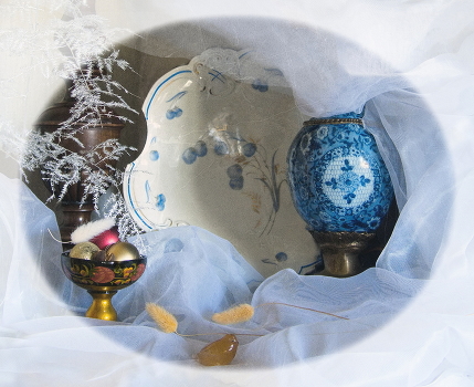 Память о встречах с искусством Фаберже (Спасибо друзьям за предоставленный реквизит) Конечно, у меня не было шедевральных предметов Фаберже. Но на соседнем снимке можно увидеть кувшин, который я решила попросить сыграть роль :) Этюд 20.04.2025.