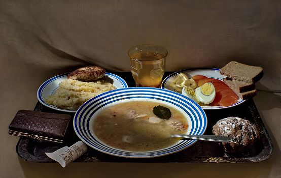 Комплексный обед советской заводской столовой.