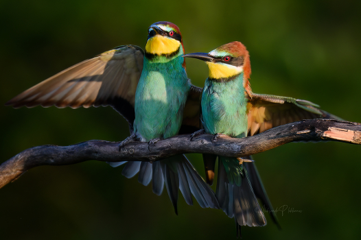 Золотистые щурки European Bee-eater Солнце встаёт. Тени.