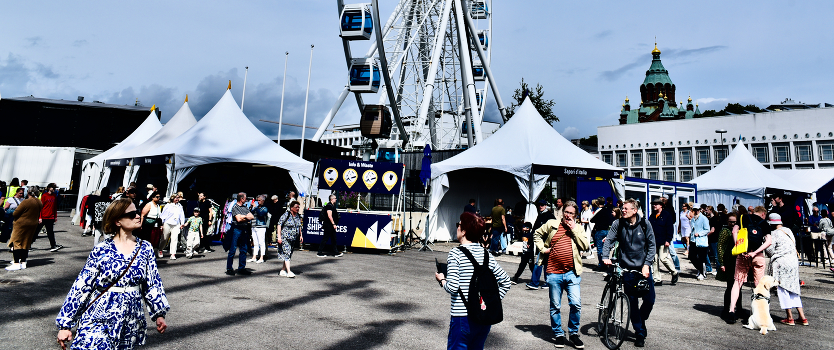 Ярмарка. На ЗП -- «Небесное колесо» SkyWheel. Забавно, что нижняя гондола этого колеса обозрения., -- первая в мире сауна! Самая настоящая, финская: с температурой 90 по Цельсию :).
