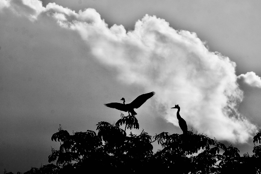 Серая цапля (Ardea cinerea) "Наиболее обычный и распространенный вид цапель. Кормится на самых разных водоемах. Гнездится колониями. Гнезда обычно располагают на деревьях в труднодоступных участках леса".
