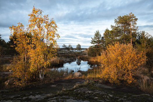 Осенние краски Ладожских шхер – золотые ивы и берёзы