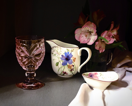 Натюрморт с альстромерией и причудливым бокалом Still life with alstromeria and peculiar wine glass