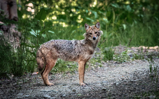 Шакал. Казалось бы – собака, как собака, средних размеров, ничего особенного. Однако, кроме того, что это вполне умное и хитрое животное, главной его особенностью, на мой взгляд, является все же повышенная скрытность и осторожность. Популяция шакалов на юге России достаточно велика, зачастую их жалобный, похожий на стенания и плач вой можно услышать с наступлением темноты на окраинах населенных пунктов, но встретить его вот так, днем и в полный рост – уже несомненная удача. Третий раз в жизни (и второй в горах) я встречаю шакала, но никак не ожидал, что из этой случайной встречи на горной дороге на высоте около 1700 метров получится вполне неплохая фотосессия. Шакал просто вышел из леса на дорогу, на обочине которой я присел передохнуть и в течение нескольких минут, семеня взад-вперед и переминаясь с лапы на лапу, пытался понять, что ЭТО такое и съедобное ли ОНО. Ну а я, стараясь не делать резких движений, тем временем достал из сумки фотоаппарат и делал свое дело. Подойти вплотную он всё же не решился и, спустя какое-то время, удалился восвояси, ну а я довольствовался несколькими десятками сделанных снимков.