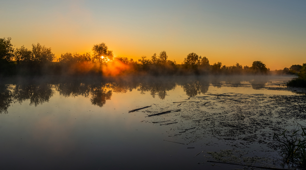 восход на пруду