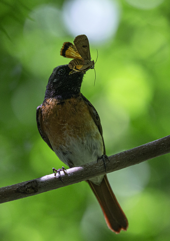 Самец горихвостки с добычей в период выкармливания птенцов