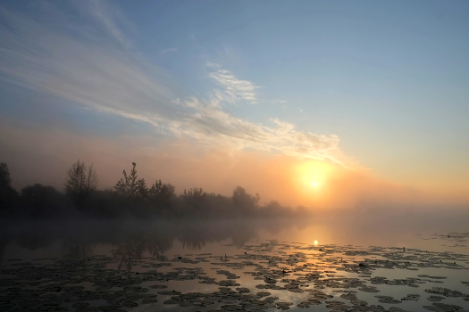 Утренний туман и облака.