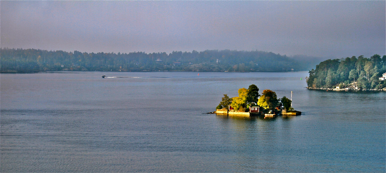 Островок в лучах пробивающегося сквозь утреннюю осеннюю мглу солнца... Шведские шхеры. Балтика, Ботнический залив.