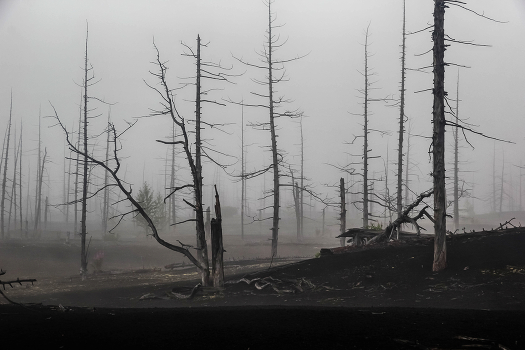 Засыпанный 50 лет назад шлаком и пеплом вулкана Толбачик лес