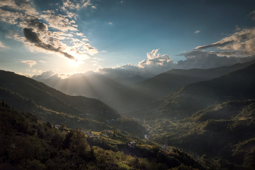Лучи солнца прорезали облака на закате