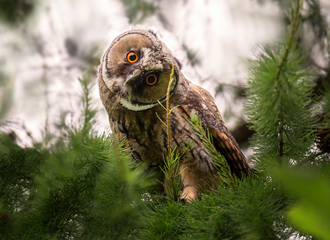 Молодая сова ушастая. Ветку не убрала намерено... а то..)) Наверное, есть понимание, что убрать её могла с лёгкостью, мне так больше...)