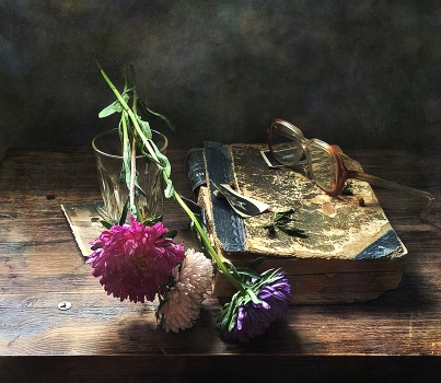 Натюрморт с книгой и цветами