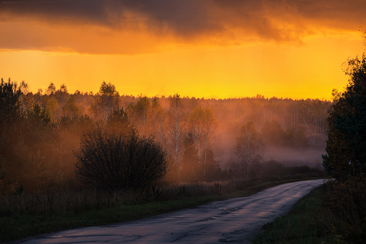 На закате после дождя.