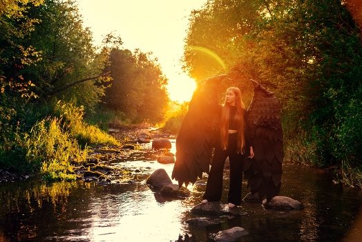 На крыльях на закате