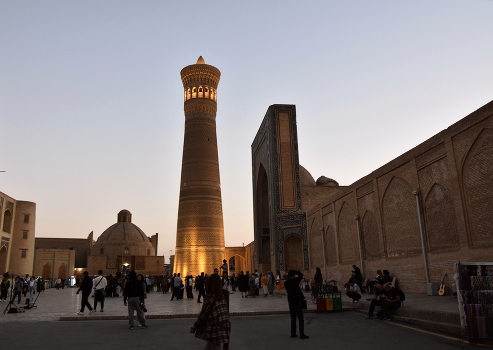 Центром старой Бухары считается архитектурный комплекс Пои- Калян. Здесь находится древнейший минарет Средней Азии, Калян. Эта исполинская башня видна почти из всех точек города. Минарет был возведен в 1127 году.