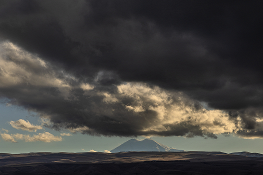 Крохотный Эльбрус под громадными облаками