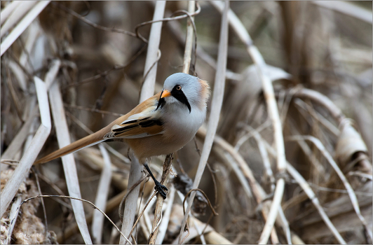 Самец усатой синицы в среде обитания