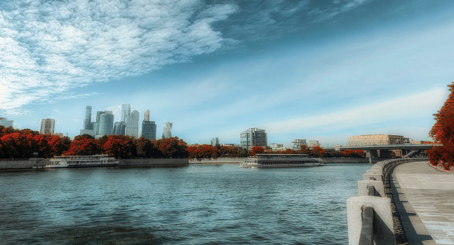 Вид на Сити с Лужнецкой набережной.