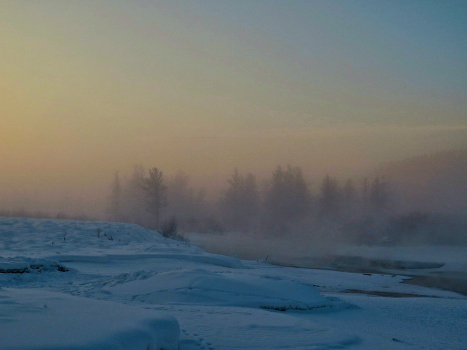 Морозное утро на Тоора-хем. Сибирь, Россия, Тува. Тоджа.