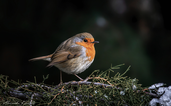 В Краснодаре несколько дней стояли минусовые температуры (да, такая пока у нас зима). Зарянке холодно, она распушилась, создавая воздушную прослойку для термоизоляции.