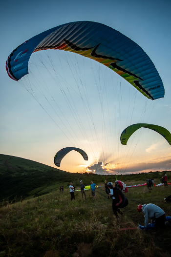 Парапланы на фоне заката