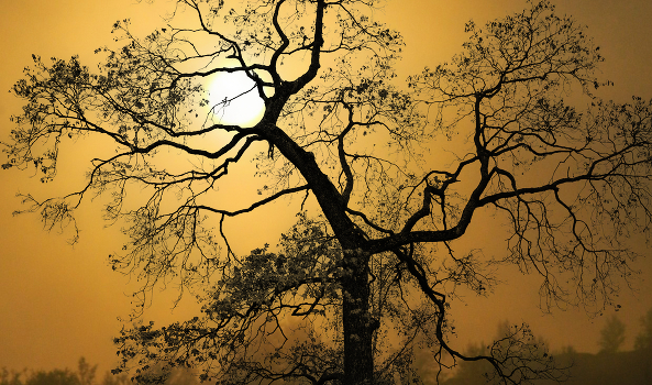 В золотом закате. "В черных сучьях дерев обнаженных Желтый зимний закат за окном."