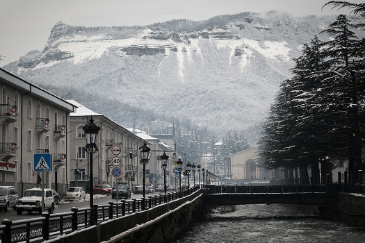 Небольшой, но симпатичный городок Ткибули под снегом