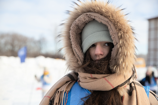 На лыжных гонках. "Болеем"