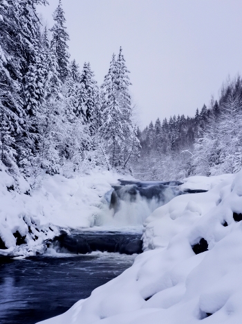 Водопад Кивач в Карелии в зимнем убранстве